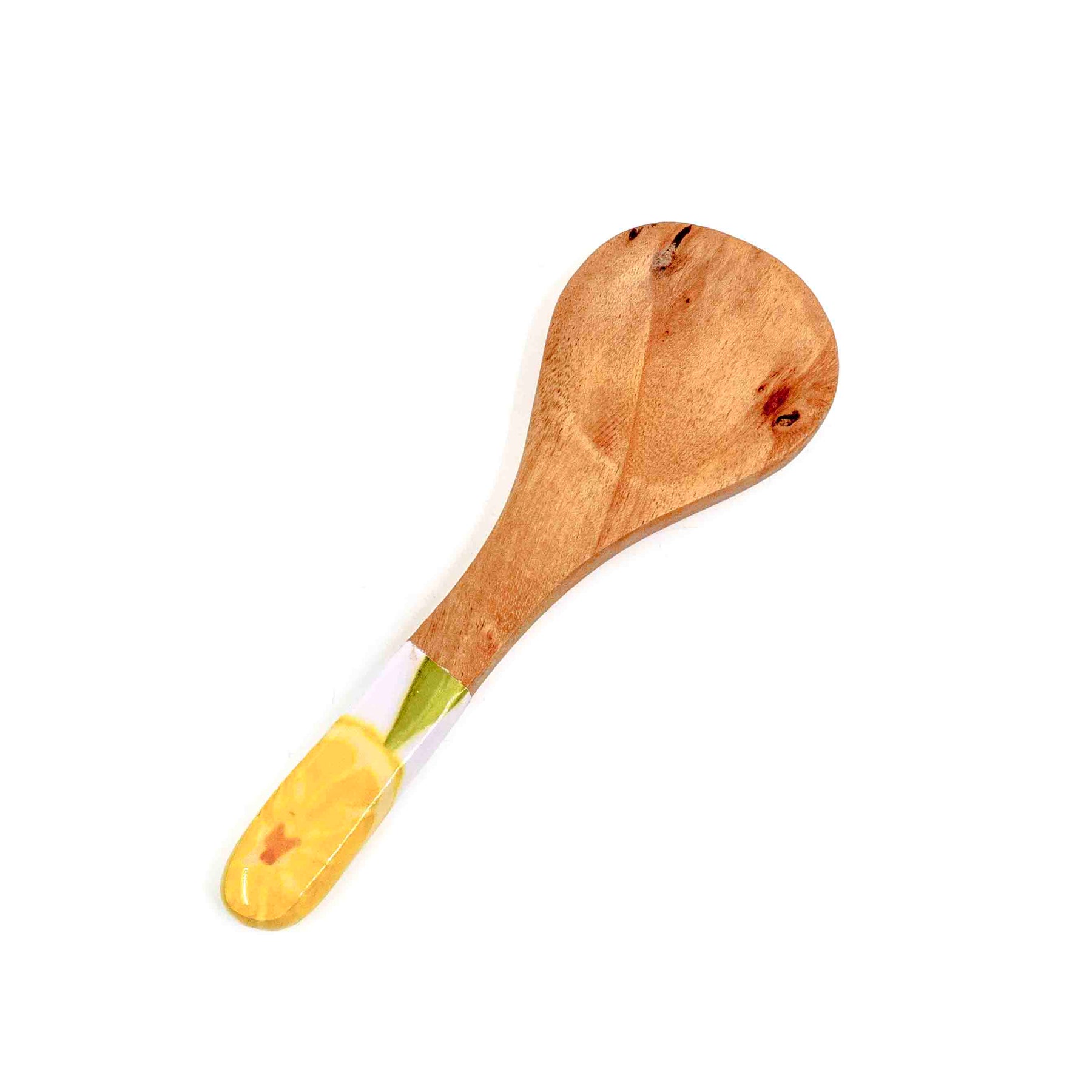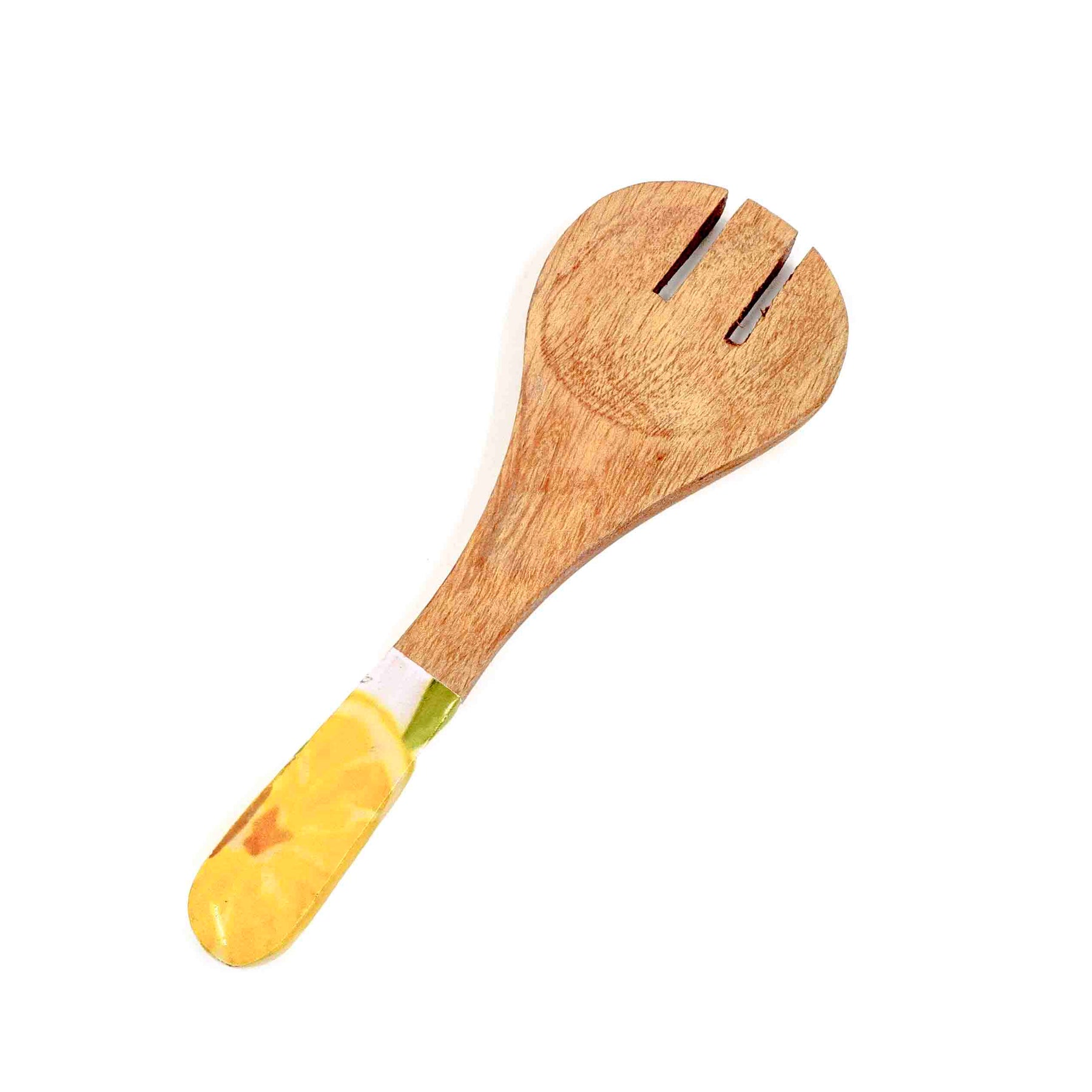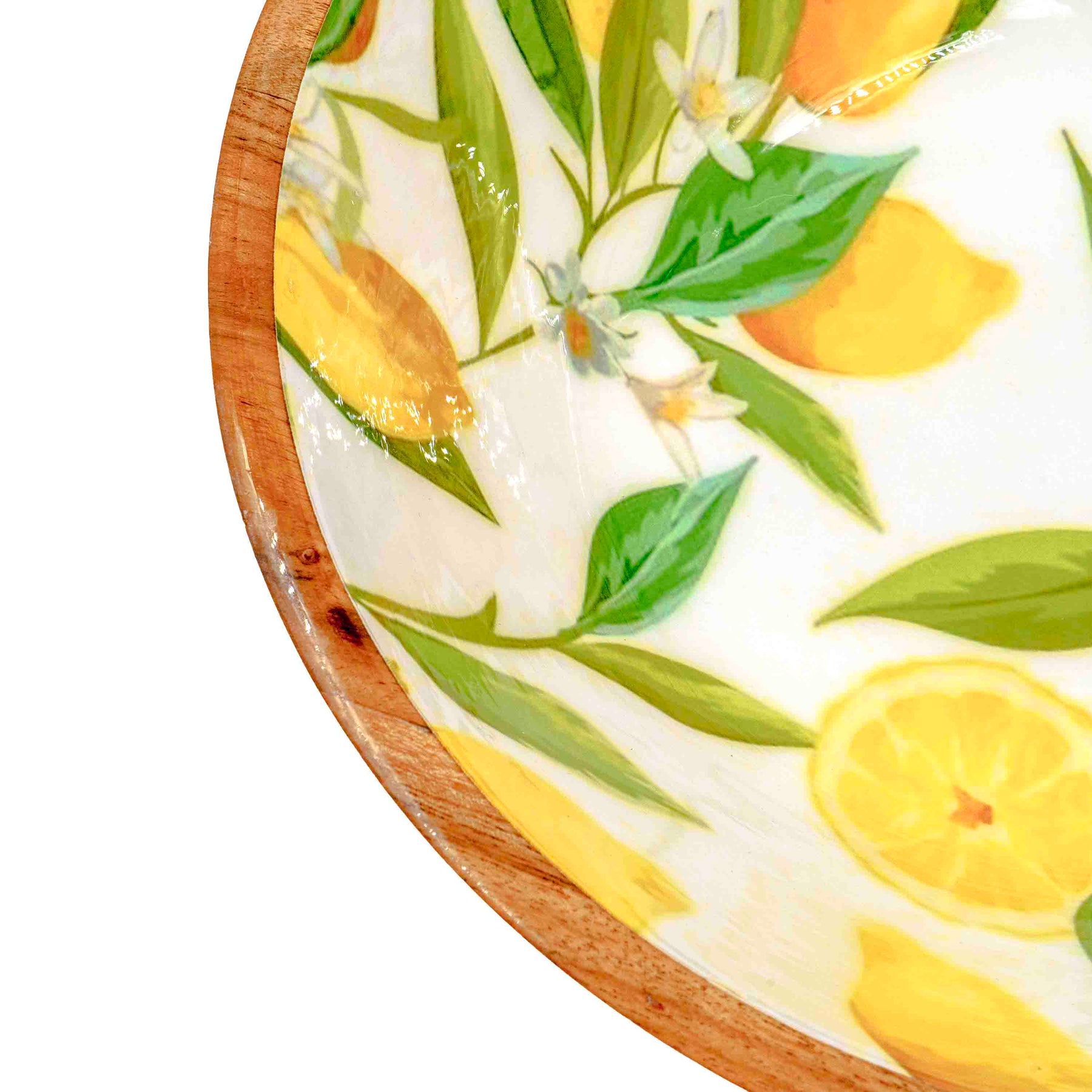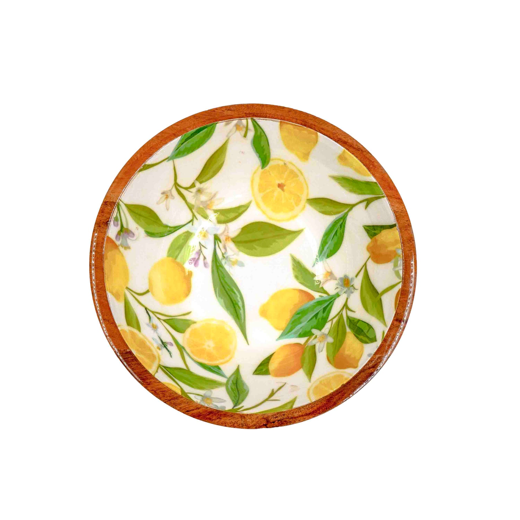 Crafted from rich acacia wood and paired with hand-enamelled lemon-patterned handles, this salad set is where tropical freshness meets natural warmth. The bowl comes with a matching wooden lid for easy storage, while the coordinated salad servers and cheese spreaders make it perfect for entertaining. A functional yet decorative centrepiece for your dining table.
